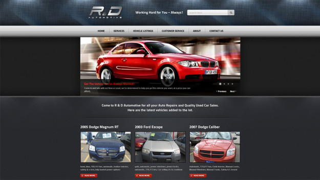 With R&D Automotive’s new website, it’s easy to get the car you’ve always wanted! Search the cars on the lot and easily inquire about any. Vehicle listings shows the total number of cars on the lot with subtotals by model. Prices, descriptions and contact information at your fingertips.